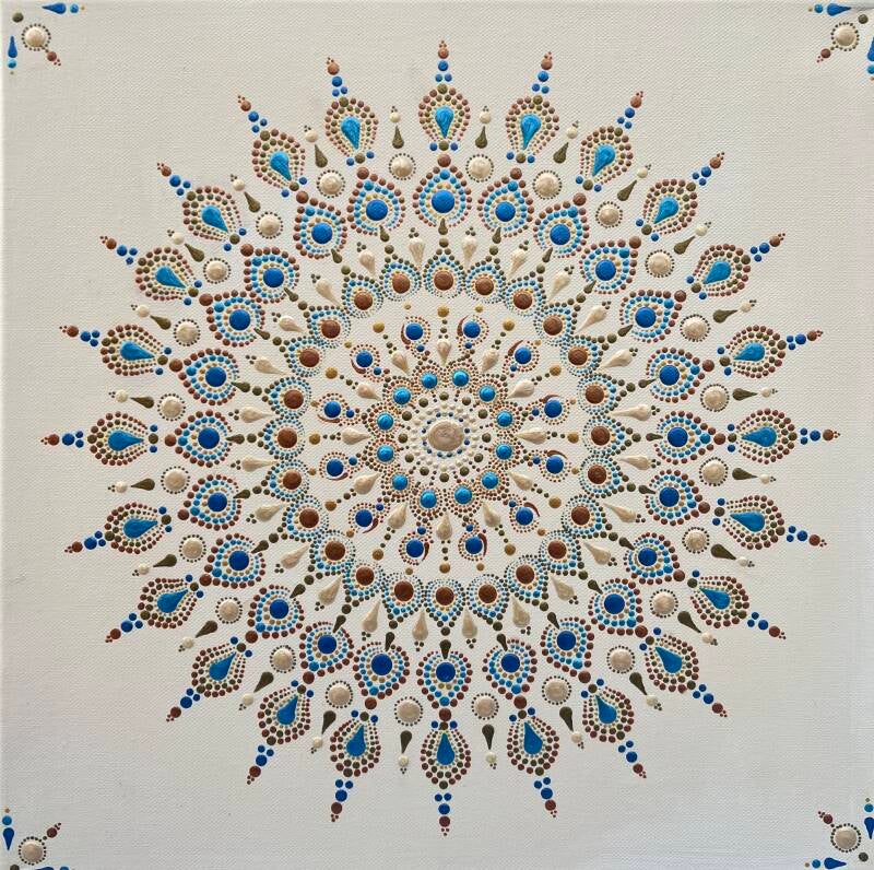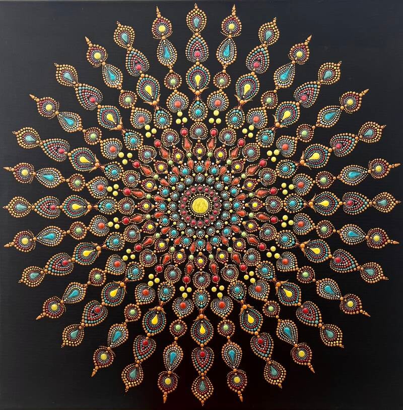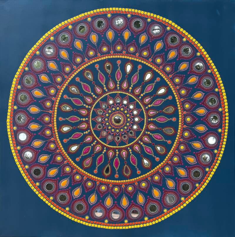 Acrylic on stretched canvas with mirrors 80 x 80 cm.